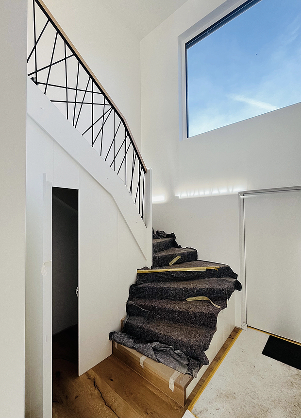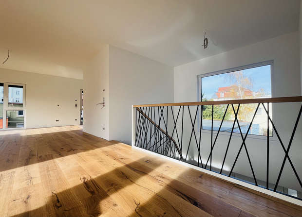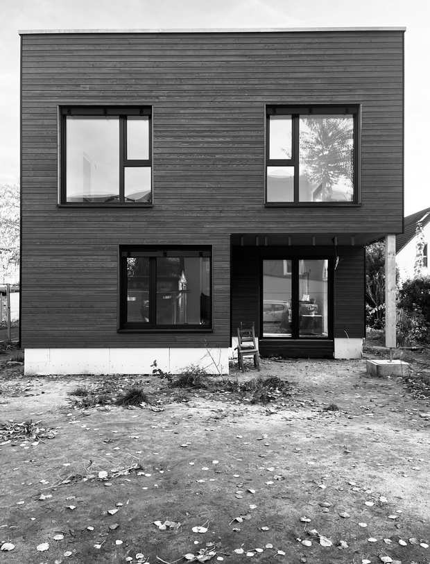 Das Gebäude entsteht in moderner Holzbauweise, wodurch sowohl eine nachhaltige Konstruktion als auch ein behagliches Wohnklima gewährleistet werden. Die Fassade ist mit einer vorgegrauten Schalung aus Lärchenholz verkleidet.